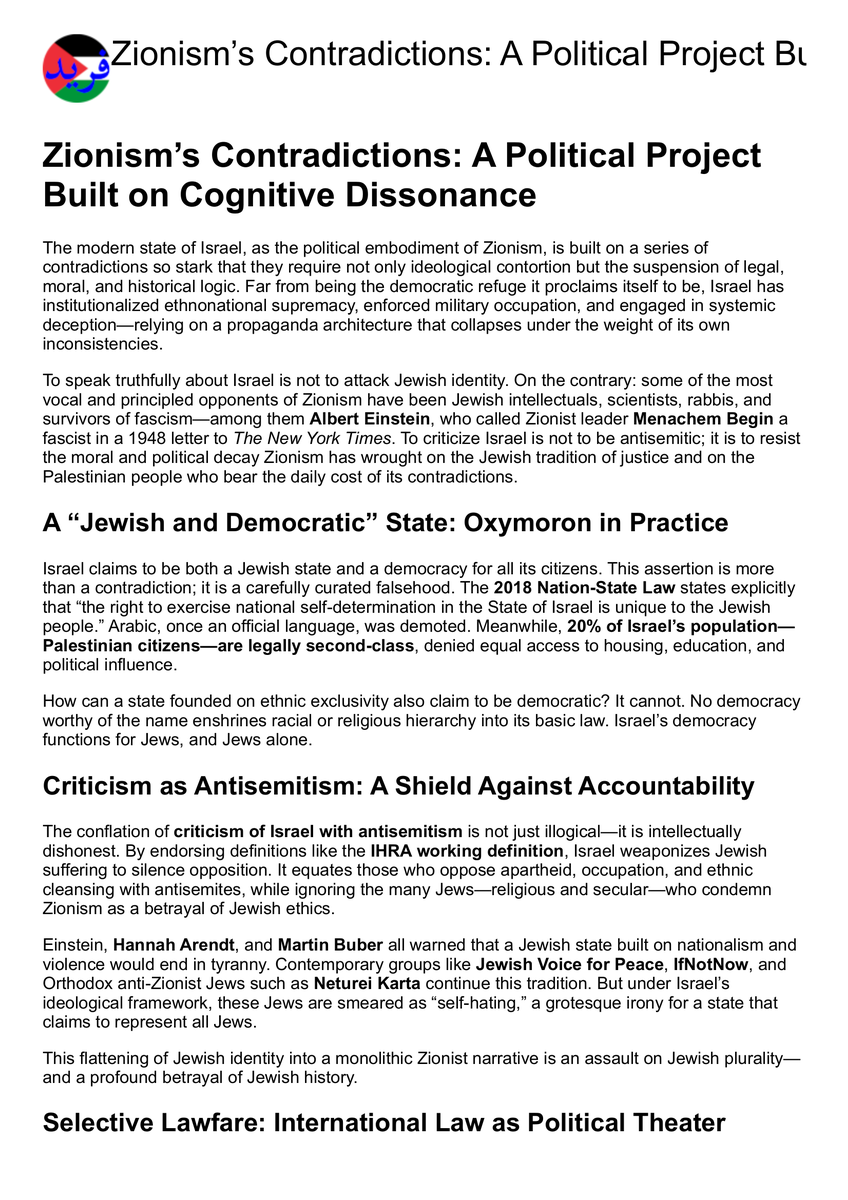 Zionismโ€™s Contradictions: A Political Project Built on Cognitive Dissonance - 24 Languages - Audio Podcasts - No Ads / Cookies https://farid.ps/articles/zionism_cognitive_dissonance